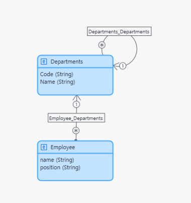 조직도를 예제로 만들어 볼 것이다. Domain Model은 부서가 부서를 참조하게 해놨고 그이유는