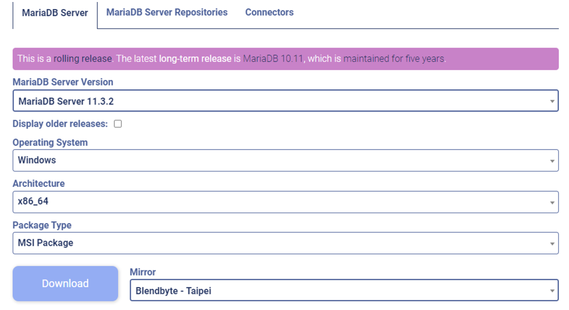 나는 그냥 최신버전의 MariaDB를 다운받았다. msi파일을 실행시키면 금방 MariaDB를 설치할 수 있다.