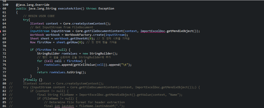 [Mendix] Java Action으로 Excel데이터 읽기( 미해결 ) 본문
