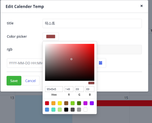 기본적인 화면을 수정하는 페이지를 볼 수 있다. 추가적으로 rbg, date 부분의 입력을 좀더 자연스럽게 하기위해서 MarketPlace의 widget을 한번 사용해볼 것이다. 색상을 선택할 수 있는 ColorPicker, Date를 선택할 수 있는 DateRange Picker 이두개를 사용하겠다.