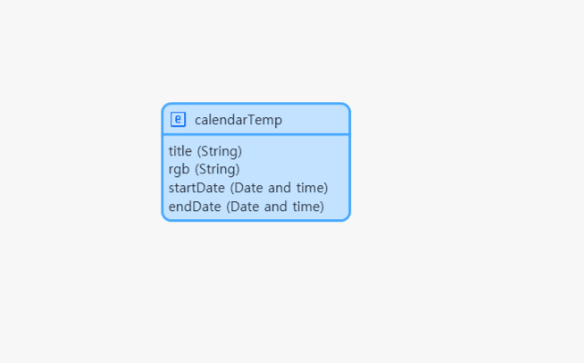 캘린더에서 사용될 DomainModel이다. 캘린더 데이터의 타이틀, 색상, 시작날짜, 끝날짜 이렇게만 생성해주면 모델도 끝났다. 이제는 연동을 해주면된다.