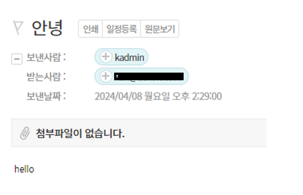 설정을 완료하고 메일을 한번 보내봤다. 잘오는것을 확인해볼 수 있다!!!