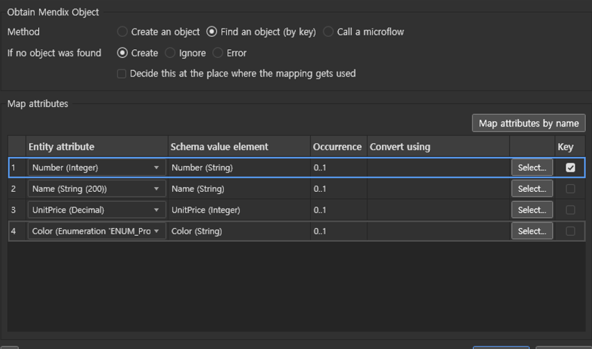 응답탭에서 미리 만들어놓은 매핑을 가져다 사용하면된다!