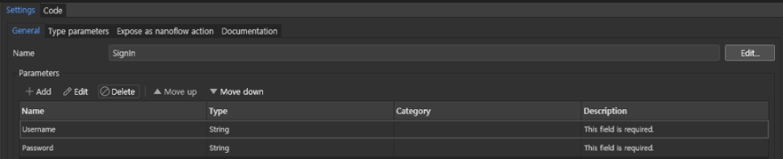 SignIn JavaScript함수는 Parameters로 Username, Password를 필요로 하고있다.